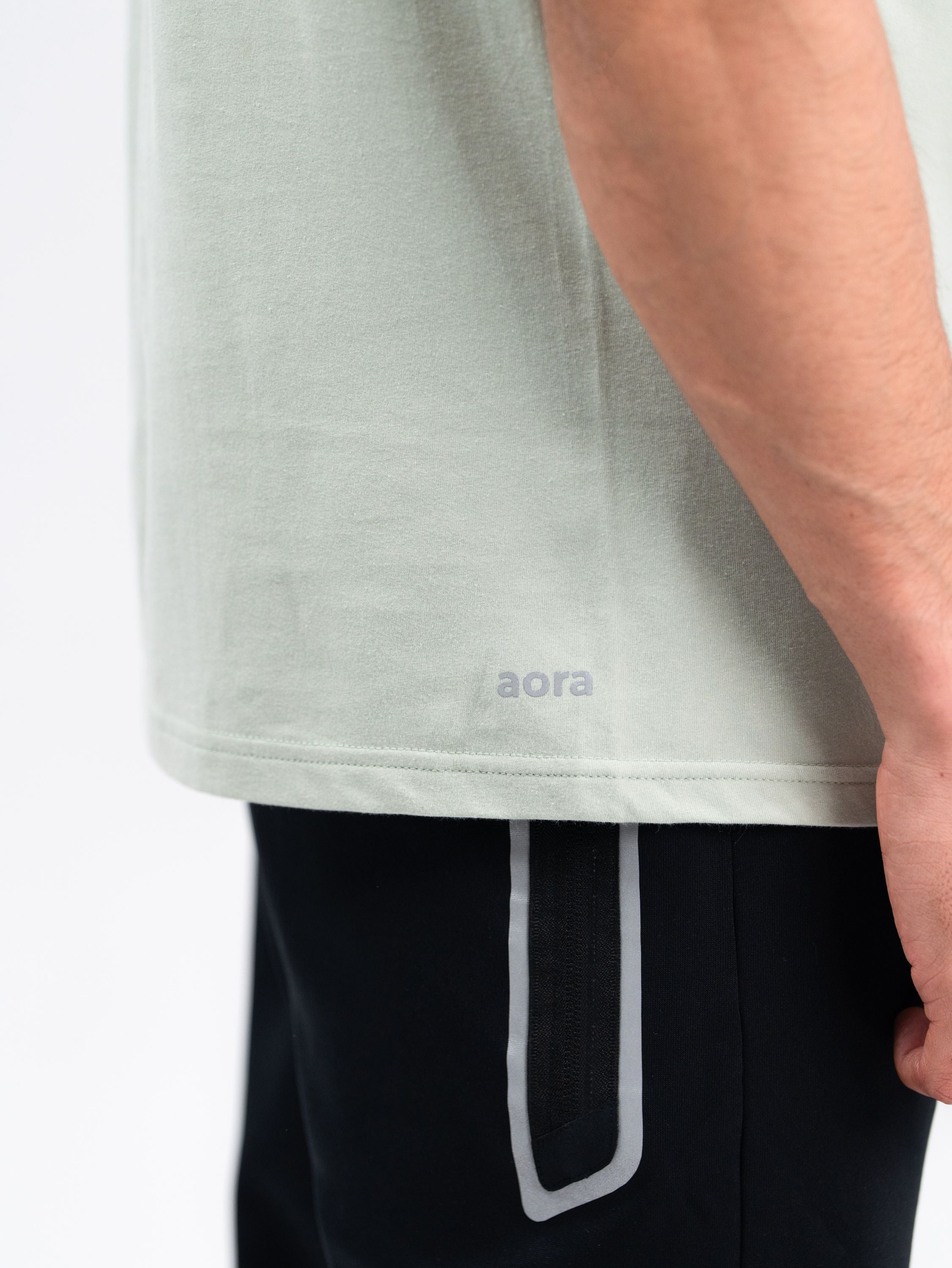 AORA emphasizes durable, breathable, and flexible fabrics in its designs evident in its use of moisture-wicking materials that enhance comfort, flexibility, and longevity.